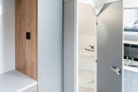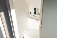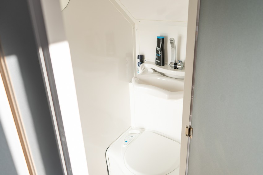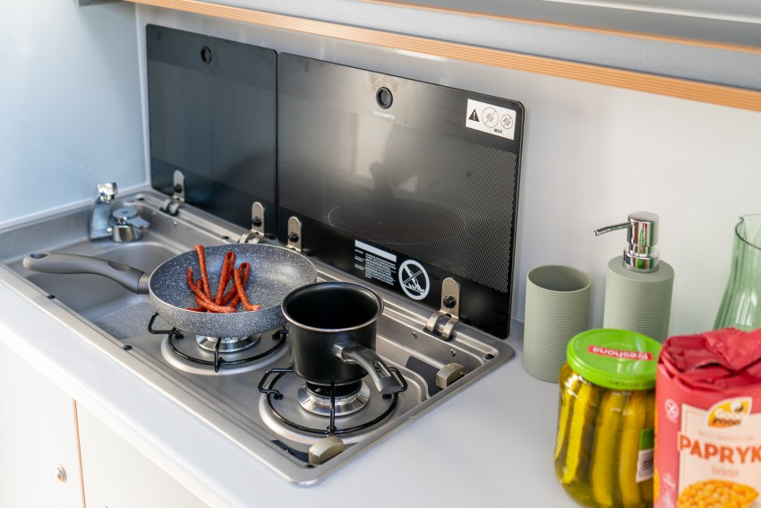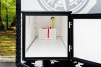 This unique trailer is dedicated to all adventure and travel lovers for whom freedom, comfort and functionality play an important role. In the living area there is a kitchen module where a gas cooker and a sink are available. A refrigerator is also integrated. In the bathroom there is a toilet and a washbasin, for showering there is an outside shower. The sleeping berth in the Black Road is fixed and for the second sleeping berth it is sufficient to lower the table and provide it with cushions. In the rear area there is a ladder and a spare wheel for emergencies. The roof is equipped with both a railing and a roof rack.